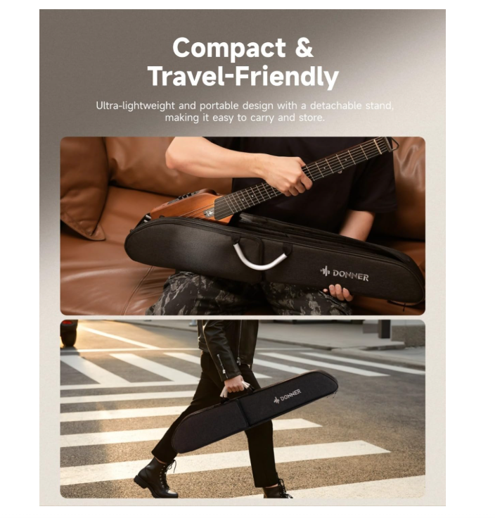 Wenn ihr eine kompakte, leise und moderne Reisegitarre sucht, die perfekt für unterwegs, Reisen, Hotelzimmer oder das leise Üben zu Hause geeignet ist, dann lohnt sich ein Blick auf die Donner HUSH-I. Diese innovative Elektro-Akustik-Gitarre kombiniert ein extrem leichtes, zerlegbares Design mit überraschend gutem Klang – und das alles nahezu lautlos, wenn notwendig.